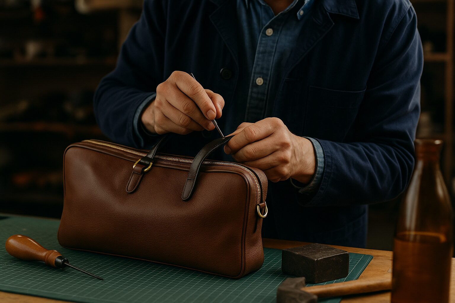 持ち手の握りやすさやファスナーの滑らかさなど、細部まで職人の技術が光ります。