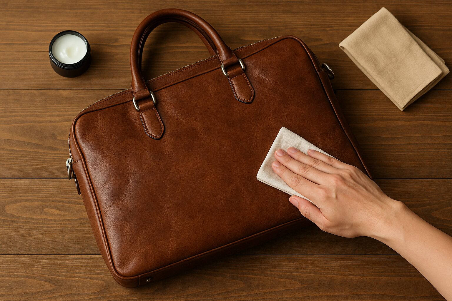 定期的にレザークリームを塗ることで、革本来の艶としなやかさを維持できます。