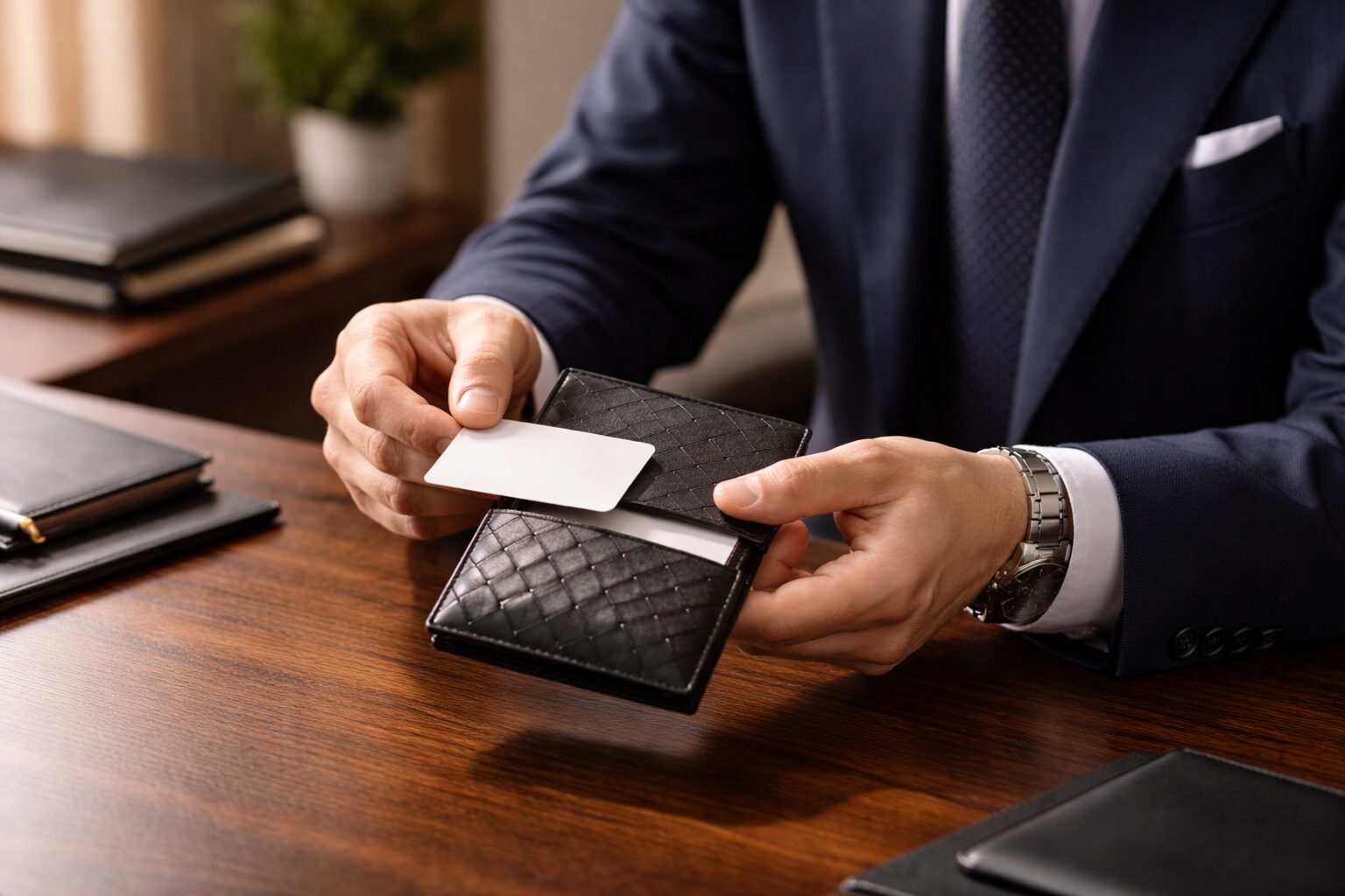 逆に、時計や靴、鞄も含めて落ち着いた高級感でそろっている人なら、名刺入れだけが悪目立ちすることは少ないです。