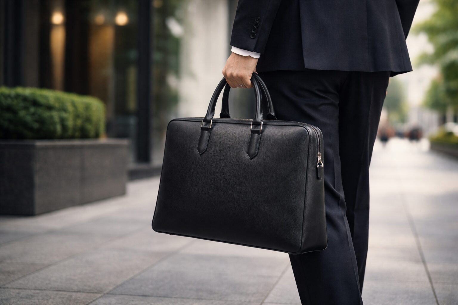 さらに「色と装飾の抑制」。黒・濃紺・ダークブラウンなど、スーツに溶ける色味で、ロゴや金具の主張が少ないほど“長く使える”傾向があります。