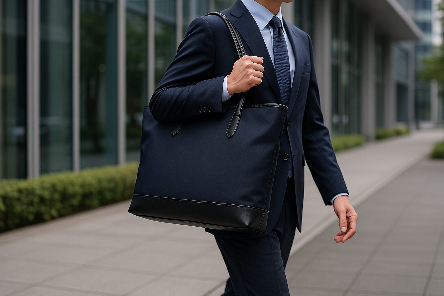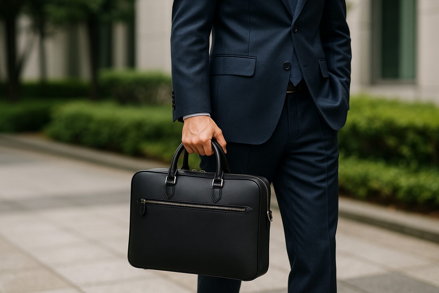 - ブリーフケースはスーツスタイルに自然に馴染むスマートな印象