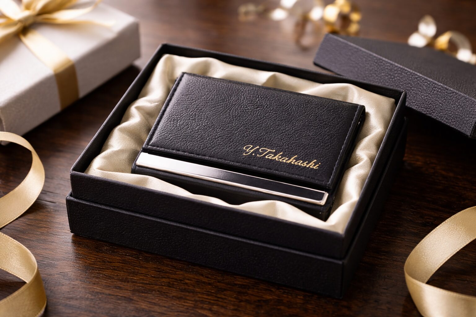 名入れの利点は、自分の持ち物としての愛着が増すことです。出張や会食が続く時期は、小物を置いたり出したりする場面も増えます。そのとき、自分のものだと判別しやすい点は意外と便利です。また、節目の贈り物としても選ばれやすく、昇進祝いや転職祝いで検討されることもあります。