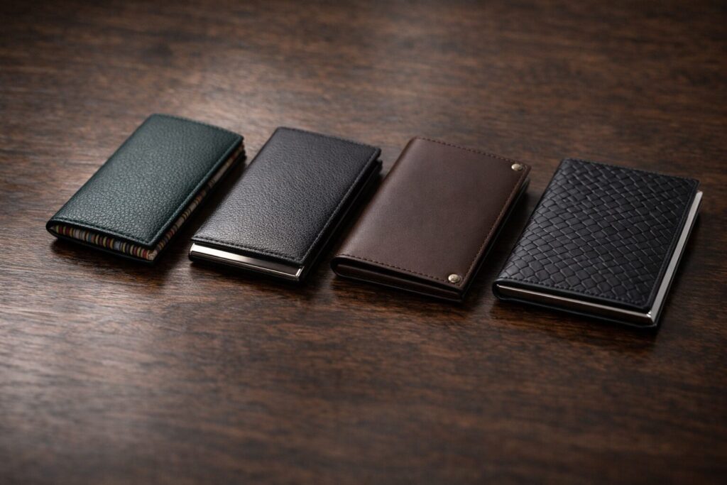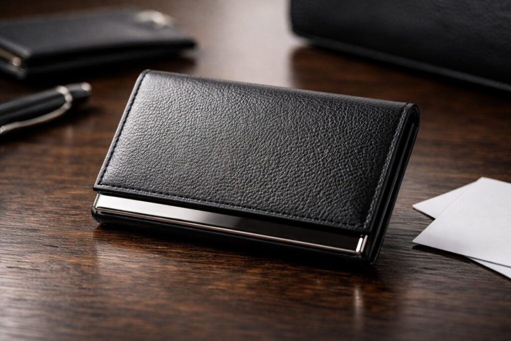 この中間的な立ち位置は、名刺入れではむしろ利点です。なぜなら、商談相手に対して「見せつける」印象を与えにくいからです。高級すぎる小物は、職種や相手によっては少し強く映ることがあります。一方で、安価すぎる名刺入れは、準備不足や消耗品扱いの印象につながることもあります。