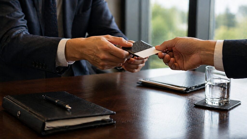 実際に使う場面を考えると、名刺入れは相手の目に入りやすい小物です。高級時計やバッグほど目立たないものの、名刺交換の一瞬で印象に残ります。