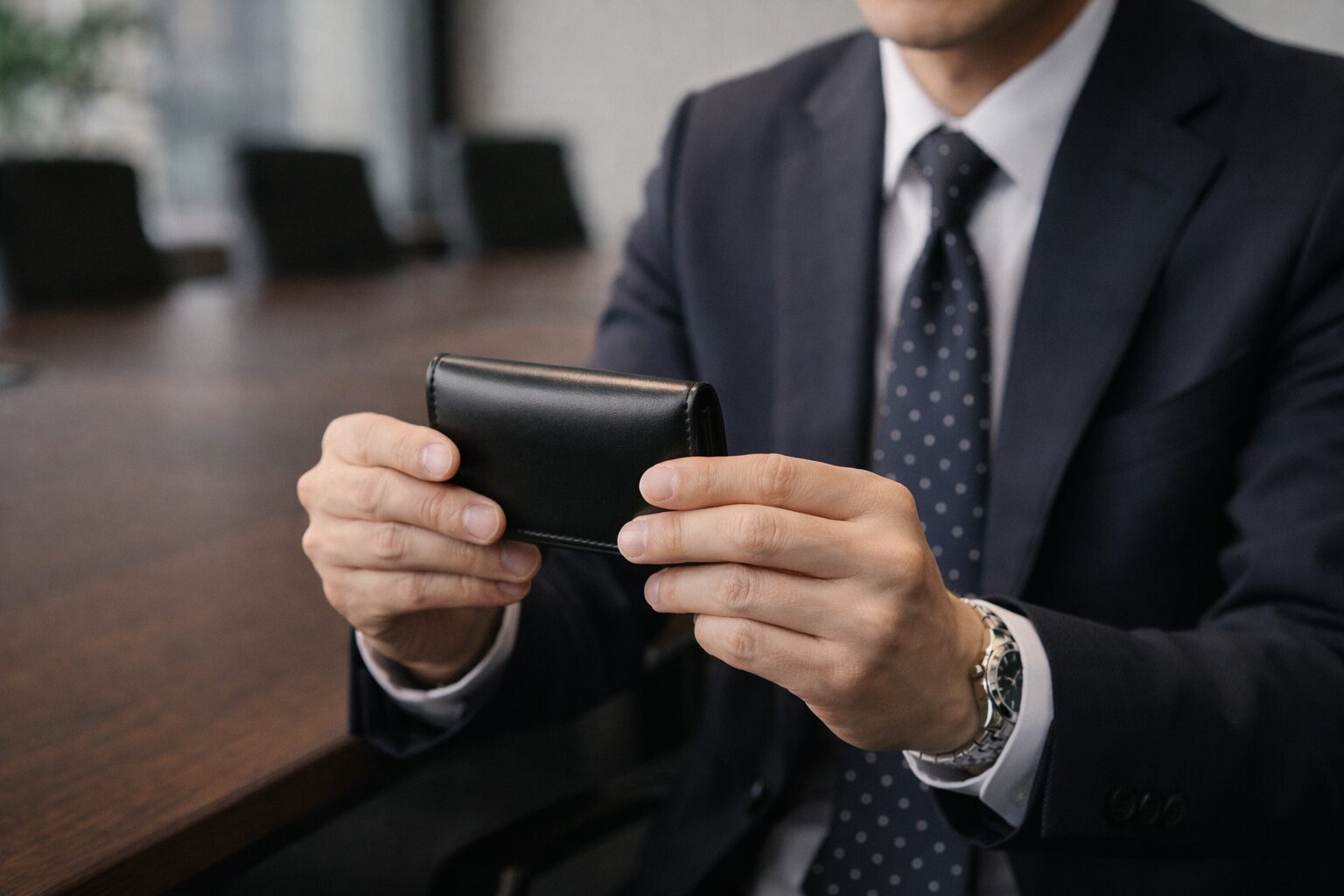 名刺交換の一瞬で、**「革小物に無理なく気を配っている人」**という印象になりやすいです。
