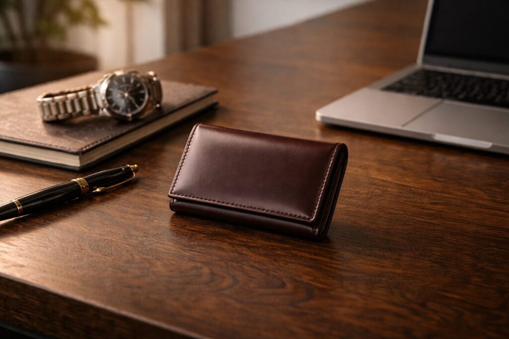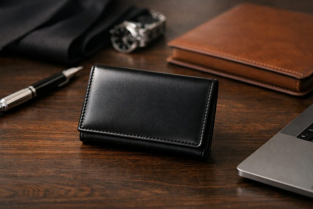 私自身、通勤や商談の場面で革小物を使い比べると、落ち着いた名刺入れは会話の邪魔をしにくいと感じます。