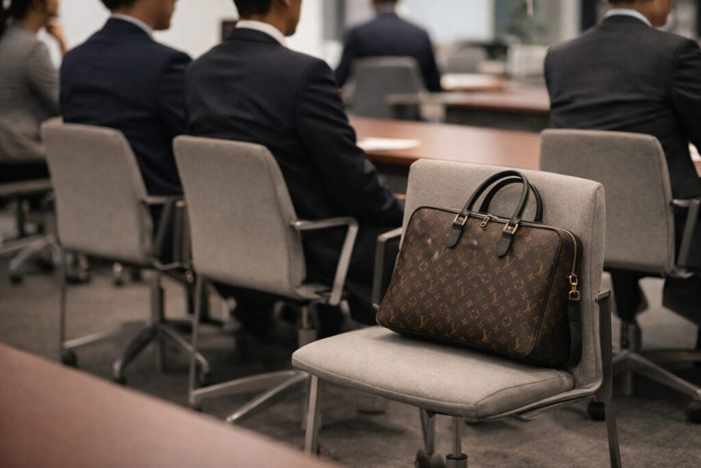 たとえば、堅めの業界、保守的な社風、現場寄りの職種では、バッグだけが目立って見えることがあります。