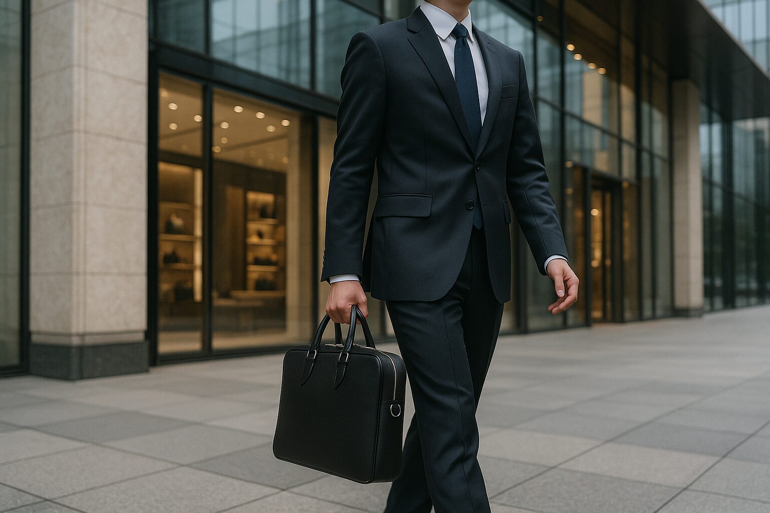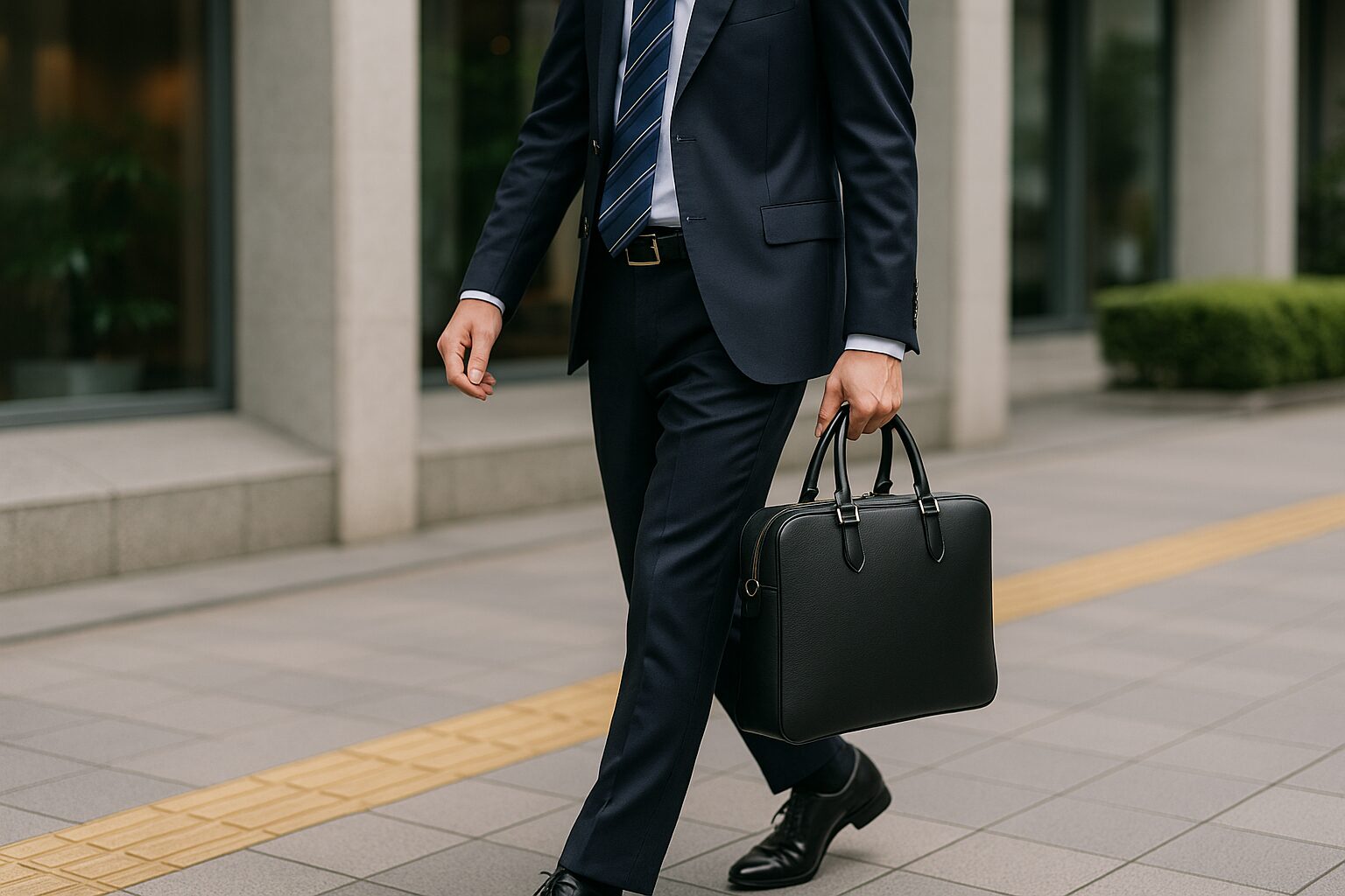 さらに、バッグのフォルムそのものも洗練された直線的なデザインで構成されており、スーツスタイルとの相性は抜群です。シンプルながらも存在感を放つため、営業職や管理職、経営者など、人前に出る機会の多い職種で特に重宝されています。
