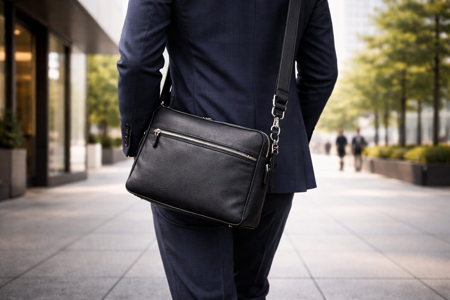 ショルダーバッグは、移動が多い人にとって魅力的ですが、ビジネス用途では賛否があります。ポールスミスのショルダーは、外観が落ち着いたモデルを選べば通勤〜外回りで十分使えます。ただし、商談・会議が多い日や、スーツの格式を重視する場面では、ブリーフ(手持ち)よりカジュアルに見えやすい点は理解しておきましょう。