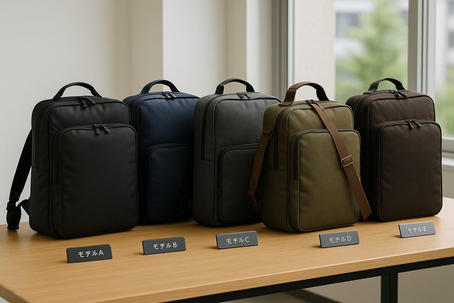 代表的な5シリーズを、素材・重量目安・PC対応・特徴で比較しました。 用途(通勤/出張)に合わせて選びやすい早見表です。