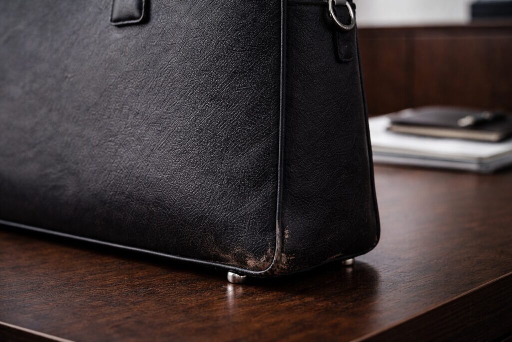 代表的なのは、自立性の低下です。底面の芯材が劣化していると、見た目は良くても置くと倒れてしまいます。また、サフィアーノレザーでも、角擦れや内部の破れは避けられません。