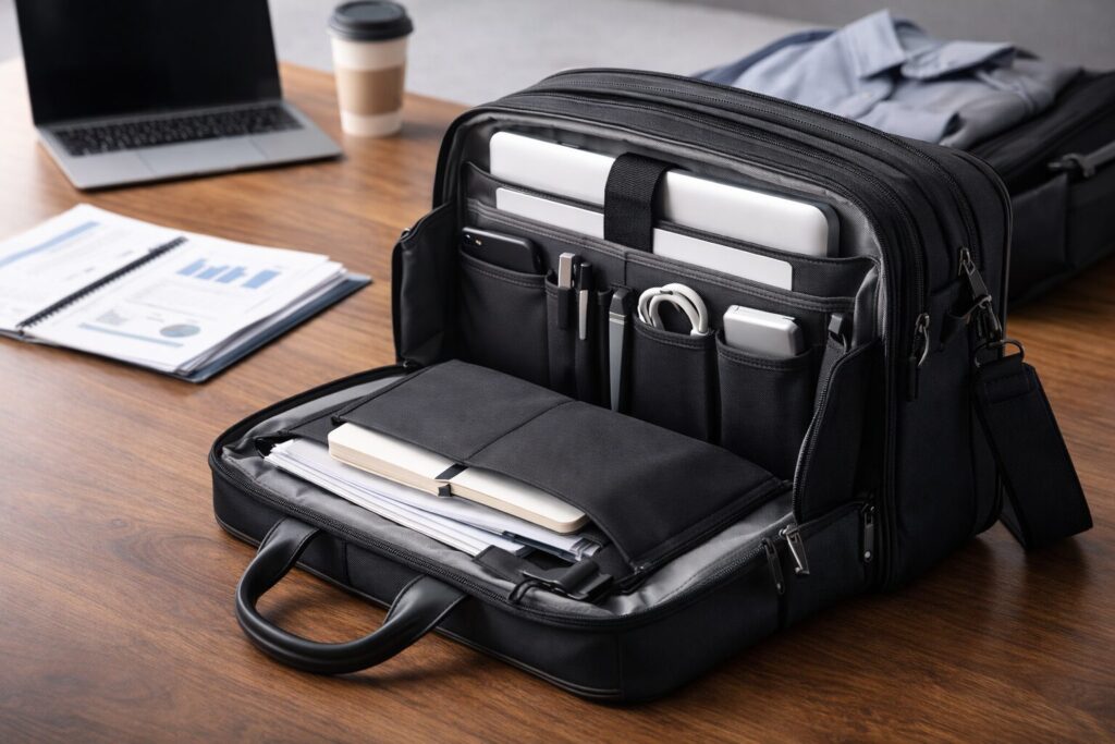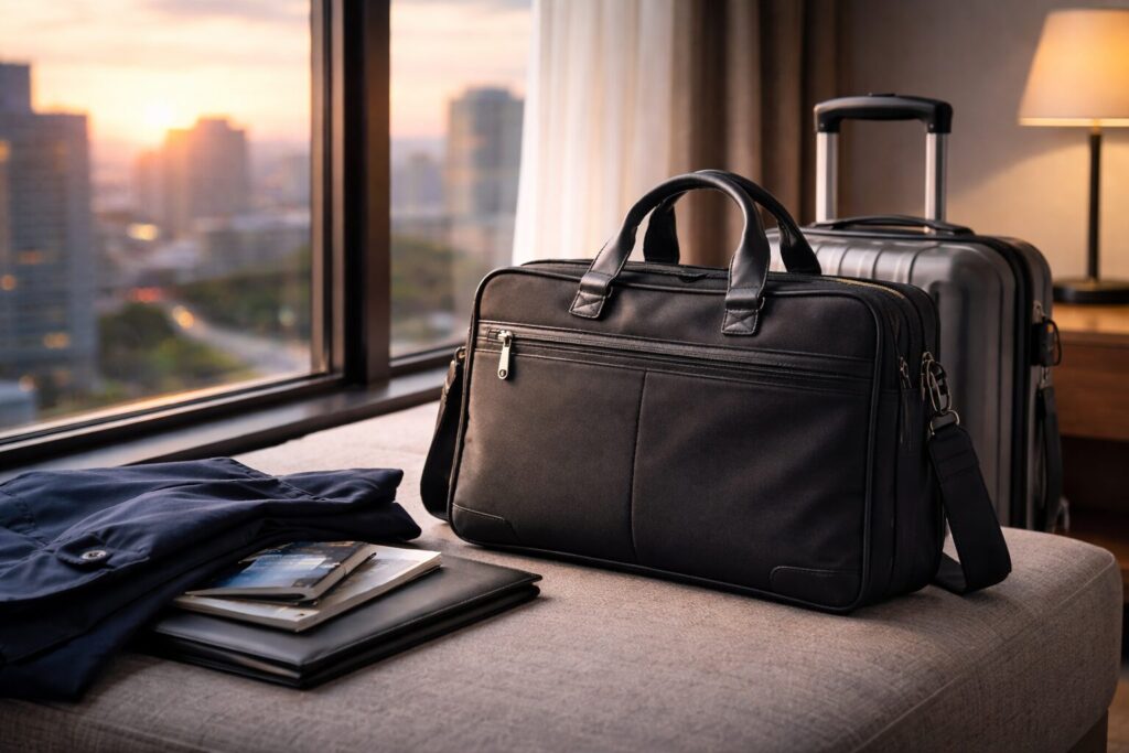 軽量ビジネスバッグは日帰り〜1泊想定が中心。2泊以上の着替えまで入れると膨らみ、見た目も崩れます。
